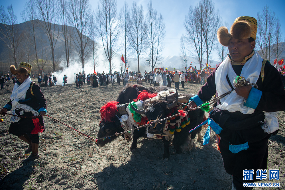 圖為西藏山南市乃東區(qū)門中崗社區(qū)的春耕儀式現(xiàn)場(chǎng)(3月16日攝)。新華網(wǎng) 旦增努布 攝