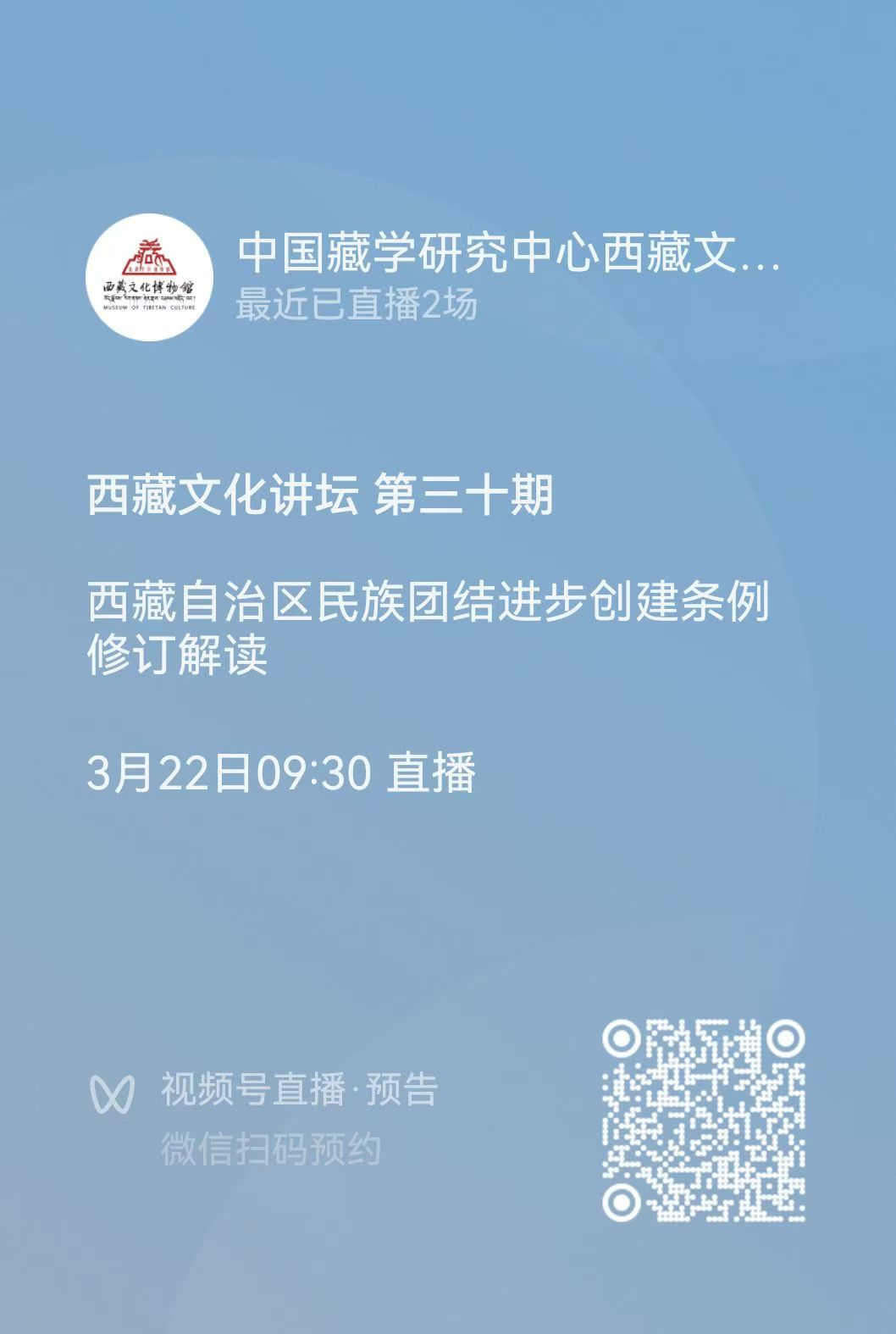預(yù)告| 西藏自治區(qū)民族團結(jié)進步創(chuàng)建條例修訂解讀 3月22日 09:30線上開講