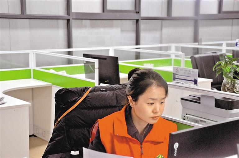 旦增德吉在拉薩市三級政務(wù)服務(wù)大廳一樓辦公點(diǎn)辦公。記者 王超 攝