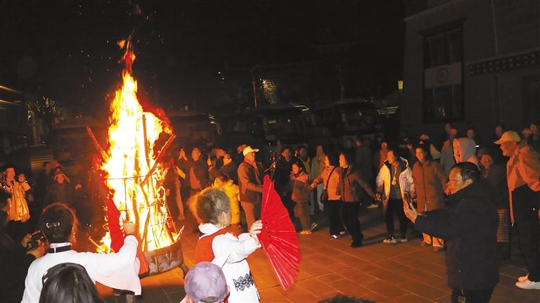 圖為游客和當?shù)厝罕娫隗艋鹎肮餐鹞?。記?武沛濤 攝