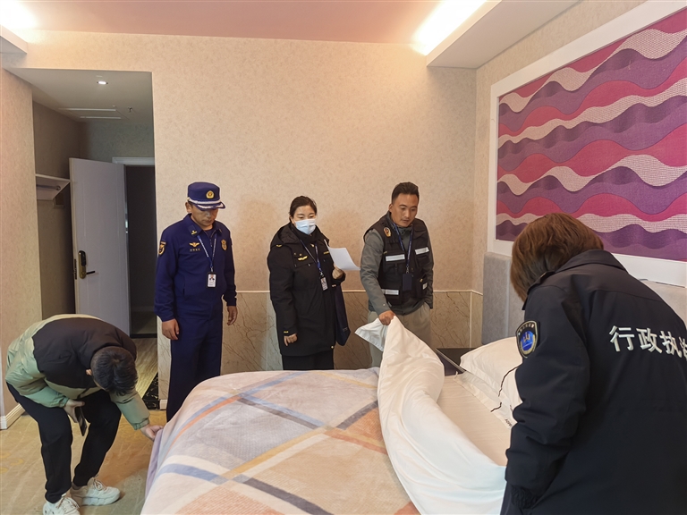 文旅部門(mén)對(duì)酒店進(jìn)行檢查?!D片由西藏自治區(qū)文旅廳執(zhí)法監(jiān)督處提供