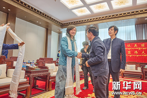 西藏自治區(qū)黨委宣傳部副部長、文化和旅游廳黨組書記肖傳江向藝術家們敬獻哈達