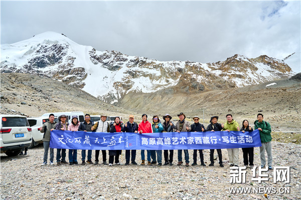 6月17日,“文化西藏 天上畫卷”高原高峰藝術家西藏行寫生活動走進廓瓊崗日冰川。