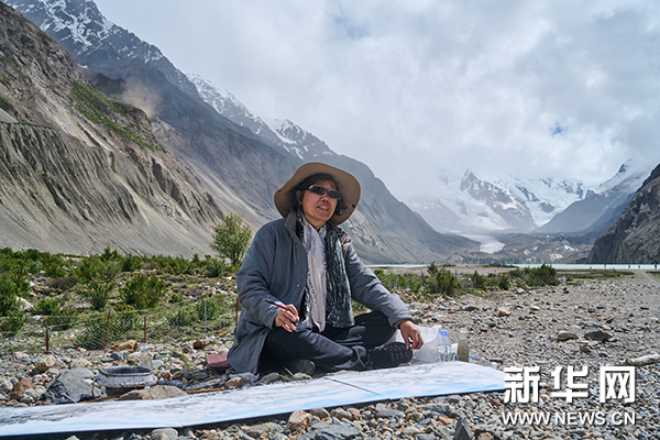 6月19日,“文化西藏 天上畫卷”高原高峰藝術家西藏行寫生活動走進祥格拉冰川。西藏中國高原畫派研究院院長、西藏自治區(qū)美術家協(xié)會名譽主席唐天源現(xiàn)場寫生。