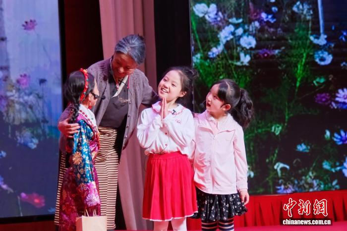 圖為民族團結原創(chuàng)情景短劇《一起話下石榴紅》演出現(xiàn)場。西藏自治區(qū)民委 供圖
