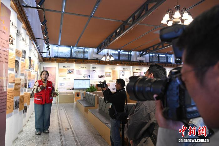 圖為媒體和網(wǎng)絡名人參觀八一社區(qū)家史館。貢嘎來松 攝
