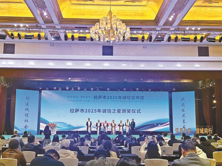 圖為拉薩市“2025年誠信宣傳周·拉薩市2025年誠信之星”頒獎儀式現(xiàn)場。記者 劉琳琳 攝
