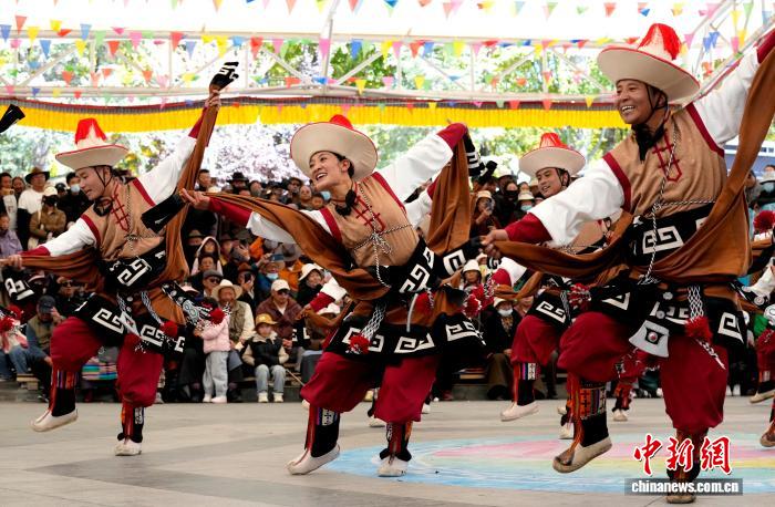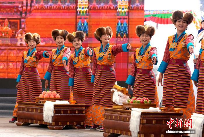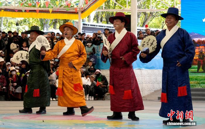 10月19日,“格?;ū崩_市第六屆縣(區(qū))藝術(shù)團文藝調(diào)演頒獎活動在布達拉宮腳下的宗角祿康公園舉行。現(xiàn)場,拉薩市各縣(區(qū))藝術(shù)團帶來精彩節(jié)目。圖為文藝調(diào)演頒獎活動上的文藝表演。中新社記者 李林 攝