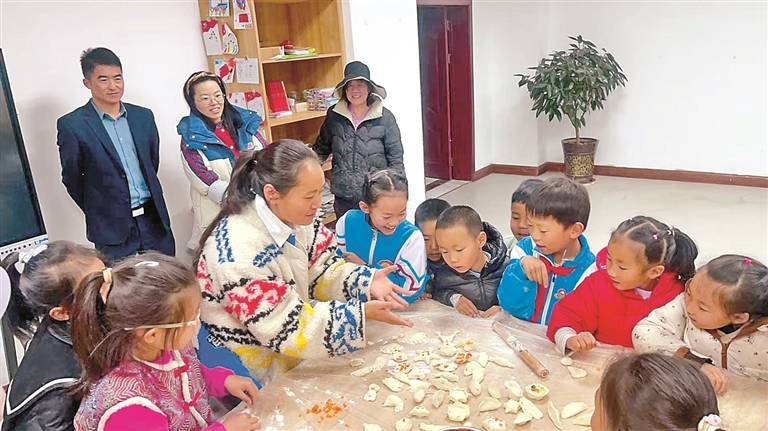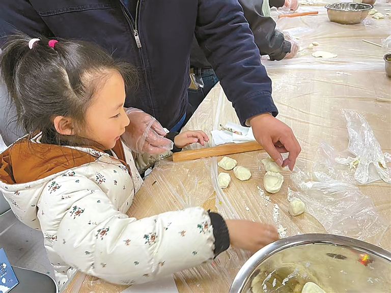 孩子們在學包餃子。記者 劉斯宇 攝