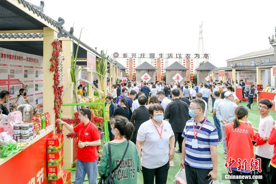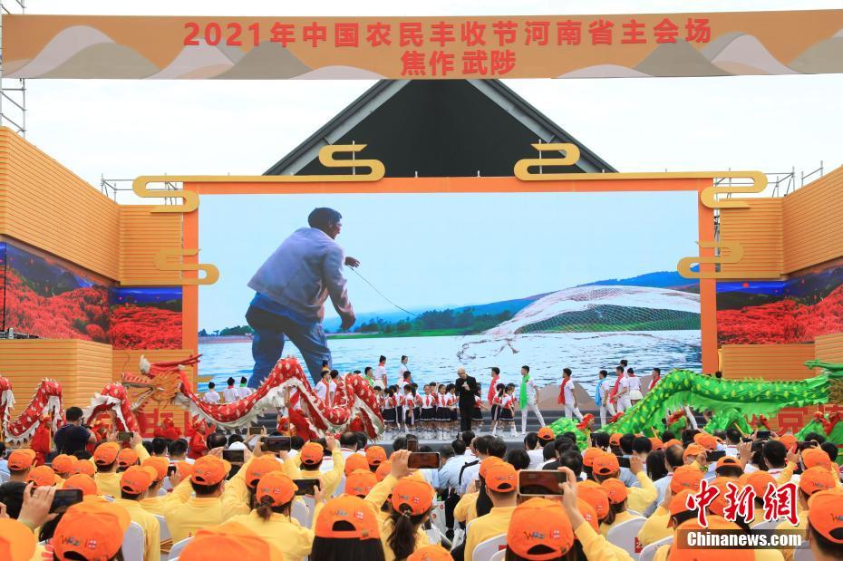 9月23日,2021中國農(nóng)民豐收節(jié)河南省主會場在焦作市武陟縣嘉應(yīng)觀啟幕?;顒蝇F(xiàn)場,隨處可見“豐收”符號,各類農(nóng)副產(chǎn)品琳瑯滿目,船上漁民捧著魚喜笑顏開。圖為2021中國農(nóng)民豐收節(jié)河南省主會場。闞力 攝