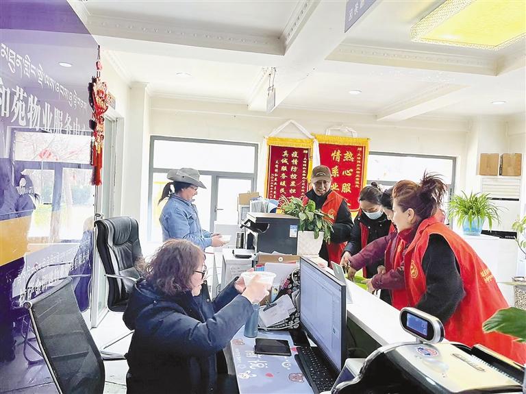 圖為拉薩市城關(guān)區(qū)納金街道林瓊社區(qū)將愛心湯圓送到堅(jiān)守在一線的工作人員手中。記者 格桑倫珠 攝