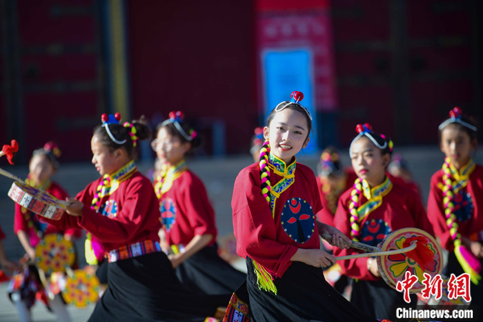 資料圖為西藏自治區(qū)拉薩市城關區(qū)慈覺林數(shù)十名孩子練習熱巴舞。 中新社記者 貢嘎來松 攝