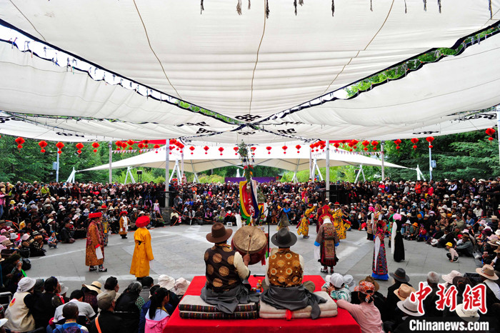 資料圖為藏戲《蘇吉尼瑪》在拉薩市宗角祿康公園上演。 中新社記者 貢嘎來松 攝