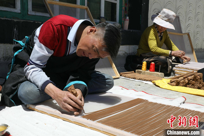 資料圖為西藏拉薩尼木縣吞巴鄉(xiāng)手藝人在自家手工制作藏香。 中新社記者 貢嘎來松 攝