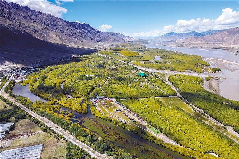 近年來(lái),山南市持續(xù)加大生態(tài)環(huán)境保護(hù)力度,著力打造沿雅江、雅礱河、隆子河等生態(tài)廊道,持續(xù)鞏固國(guó)家生態(tài)文明建設(shè)示范市創(chuàng)建成果,讓綠色成為最靚麗的生態(tài)底色。 圖為雅江南岸防護(hù)林帶(乃東區(qū)段)如綠色“長(zhǎng)城”般守護(hù)著雅江。(資料圖片)記者 劉楓 攝