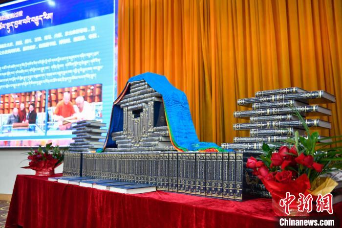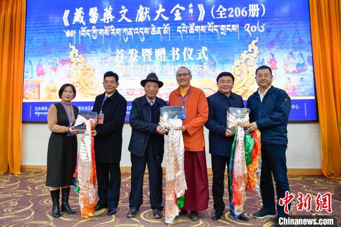圖為 《藏醫(yī)藥文獻大全》首發(fā)暨贈書儀式現(xiàn)場。貢嘎來松 攝