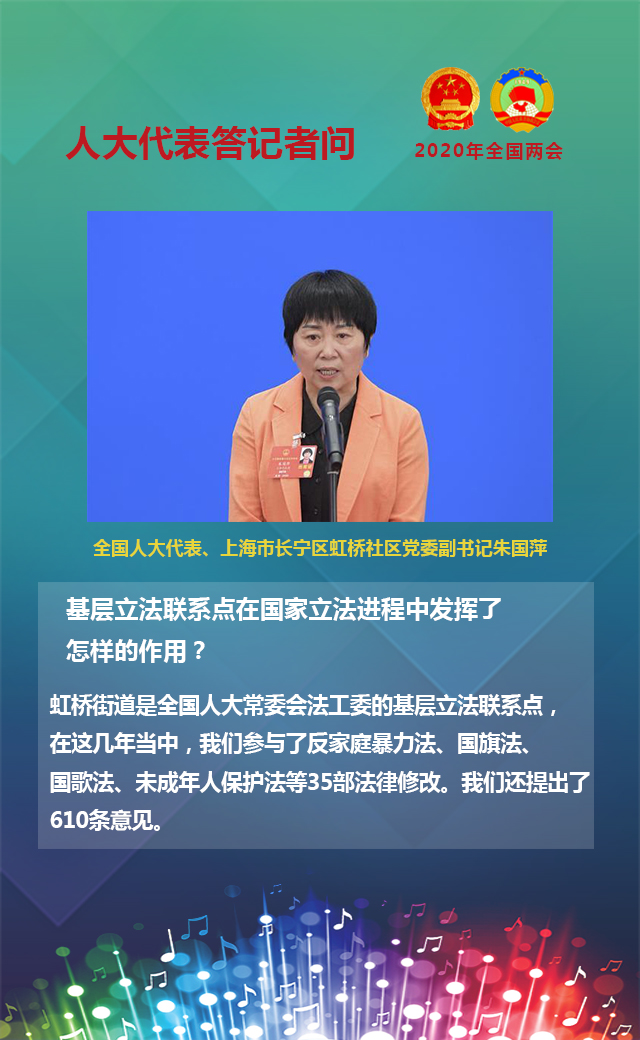 虹橋街道是全國人大常委會法工委的基層立法聯(lián)系點,在這幾年當(dāng)中,我們參與了反家庭暴力法、國旗法、國歌法、未成年人保護法等35部法律修改。我們還提出了610條意見。