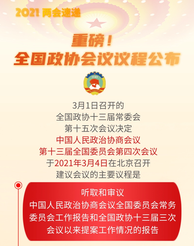 重磅!全國政協(xié)會議議程公布