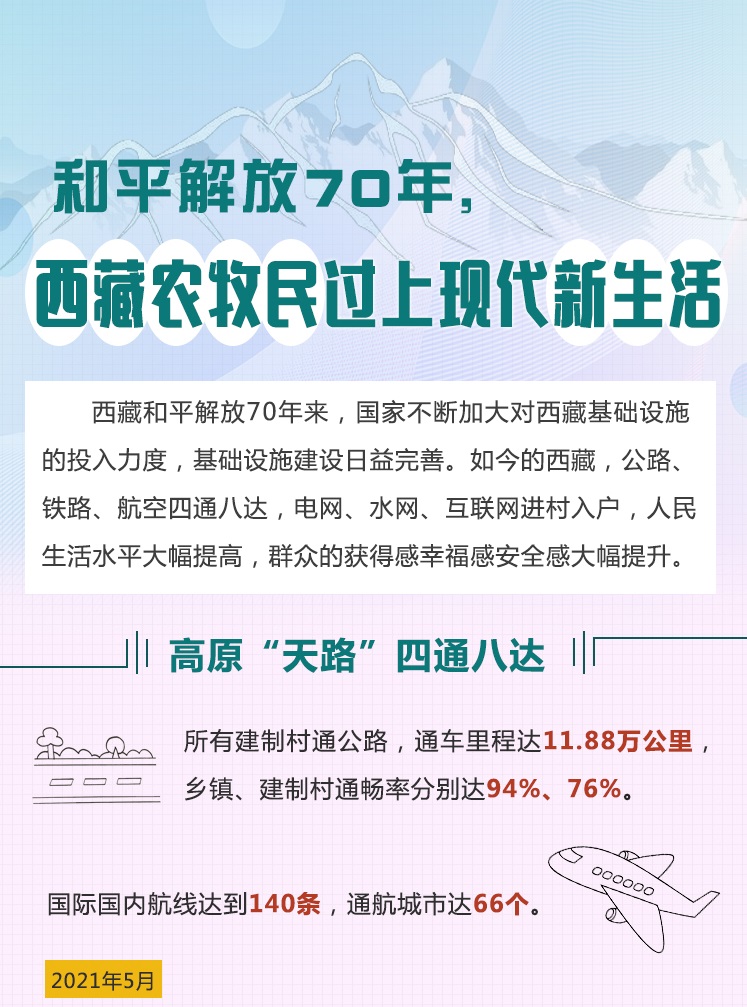 西藏和平解放70年來,國家不斷加大對西藏基礎(chǔ)設(shè)施的投入力度,基礎(chǔ)設(shè)施建設(shè)日益完善。[詳細(xì)] -