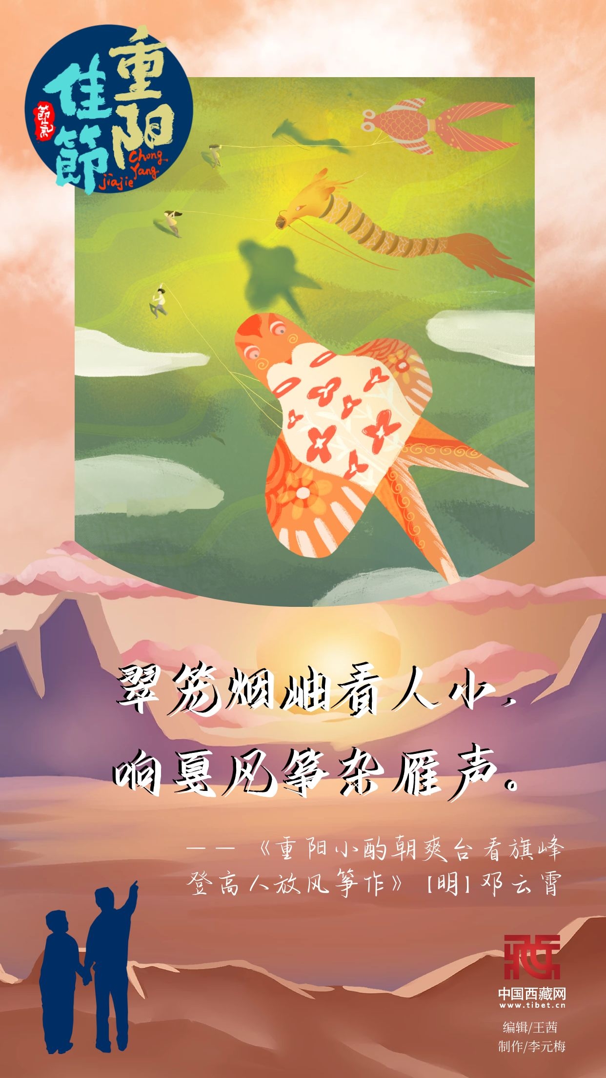 由于九月初九的“九九”諧音“久久”,古人認(rèn)為有長久之意,所以常在此日祭祖與推行敬老活動。重陽節(jié)衍生出系列民俗活動,傳承至今,中國西藏網(wǎng)邀您在詩畫中品味節(jié)日的民俗意蘊(yùn)。(中國西藏網(wǎng) 編輯/王茜 制作/李元梅)