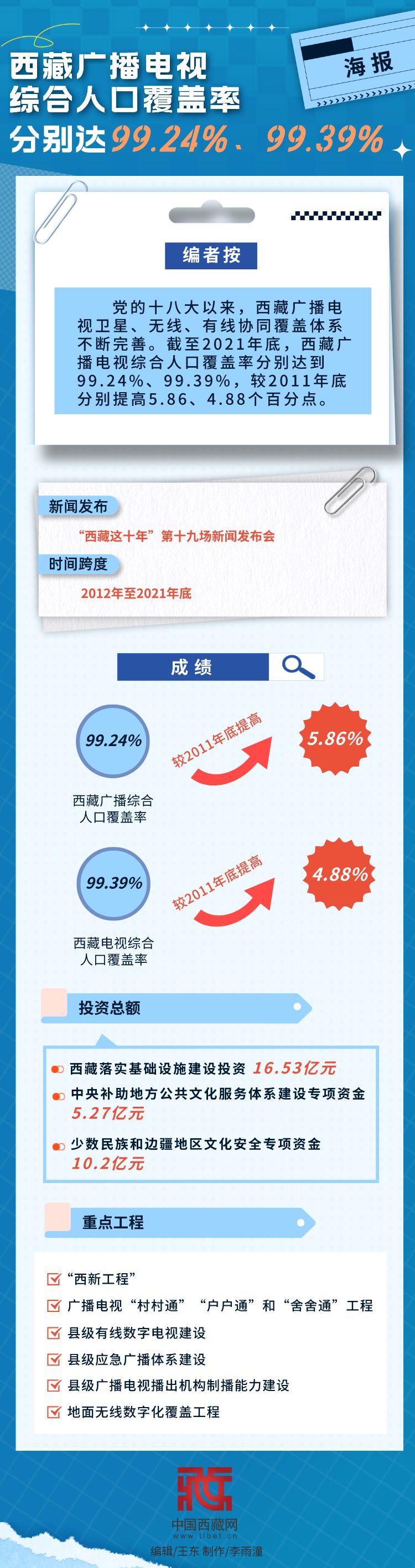 海報|西藏廣播電視綜合人口覆蓋率分別達(dá)99.24%、99.39%