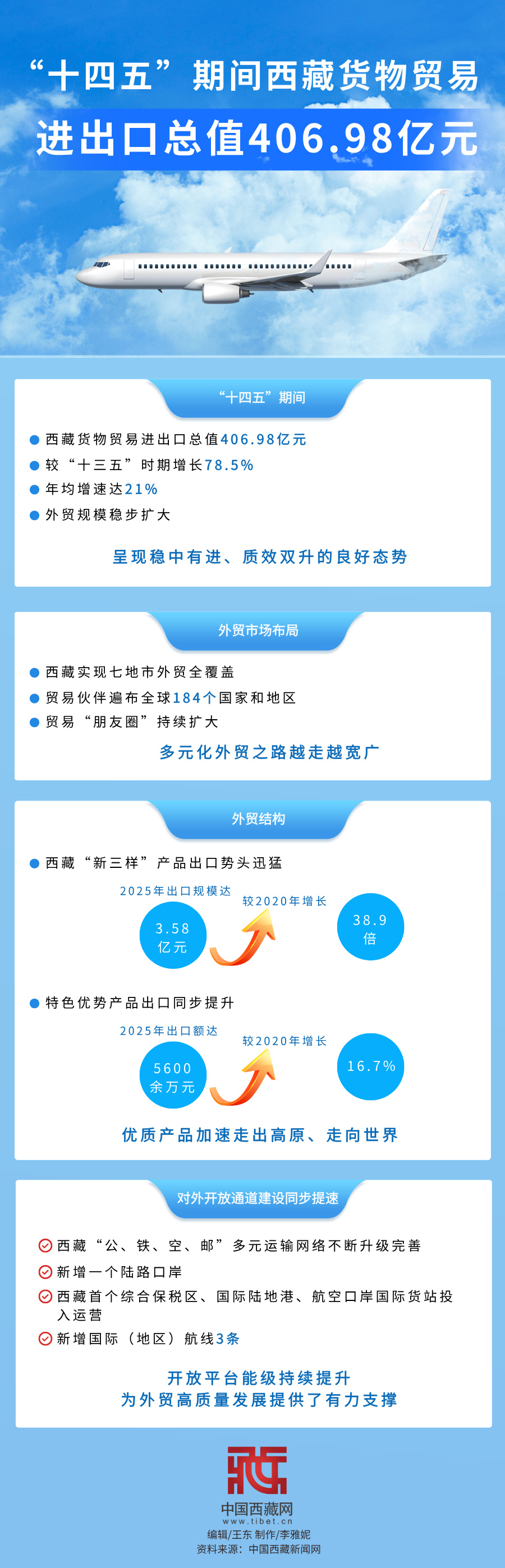 海報|“十四五”期間西藏貨物貿(mào)易進(jìn)出口總值406.98億元