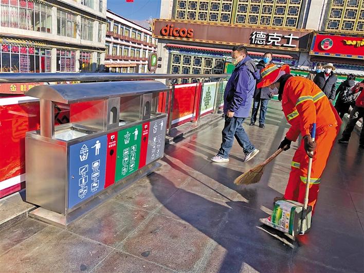 據(jù)城關(guān)區(qū)環(huán)衛(wèi)局局長米瑪次仁介紹,截至2019年底,城關(guān)區(qū)環(huán)衛(wèi)局與拉薩城投潔達環(huán)衛(wèi)保潔有限公司積極與部分企事業(yè)單位、學(xué)校及社區(qū)等47個區(qū)域?qū)?,分別投放了四分類垃圾箱120套、240L垃圾桶658個、有害垃圾消納袋116個、腳踏兩分類垃圾桶321個。已建成并投入使用的積分兌換超市3家、垃圾分類投放亭4座、垃圾分類可回收物臨時存放點13個、有害垃圾臨時存放點2個;采購2臺可回收物運輸車輛、1臺有害垃圾運輸車輛、2臺餐廚垃圾運輸車輛和1臺大件垃圾運輸車輛。在春節(jié)和藏歷新年期間,抽調(diào)工作人員在娘熱南路、北京東路、江蘇南路、康昂南路、林廓東路、沖賽康天橋、熱木其天橋、八廓商城天橋、阜康天橋等人流量較多的區(qū)域放置了垃圾四分類果皮箱。
