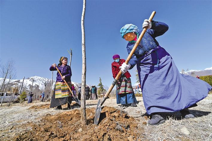 西藏那曲市森林消防大隊參加“萬人萬畝”義務植樹活動