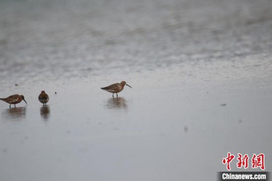 圖為彎嘴濱鷸??婶斂撕?托素湖自然保護區(qū)服務(wù)中心供圖