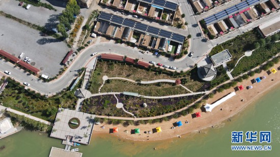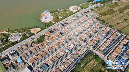 從高處俯瞰,屋頂上一片片光伏發(fā)電板排列整齊。新華網 卡婭梅朵 攝