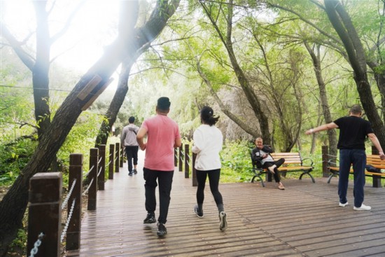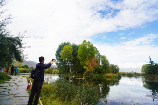 9月初,濕地里的花草樹木從夏天的翠綠到初秋的泛黃,成為了拉魯濕地另一番美景?!∪藗?cè)诓叫衅溟g,呼吸著充足的氧氣,情緒高漲,邁開輕快而有力的步伐,沿著拉魯濕地步道健步前行,時(shí)而駐足觀望沿途美景,時(shí)而聚集一方合影留念,不僅鍛煉了身體,又領(lǐng)略了自然風(fēng)光,也陶冶了情操。
