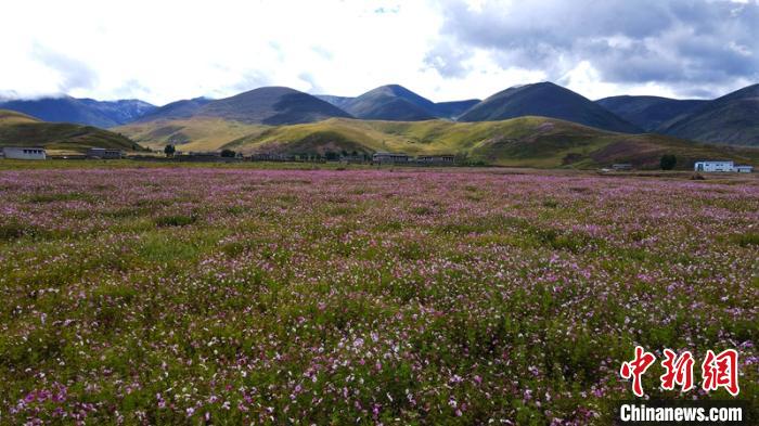 稻城縣噶通鎮(zhèn)八美村位于亞丁機(jī)場(chǎng)前往亞丁景區(qū)的交通要道上。長(zhǎng)期以來,這片草原沙化現(xiàn)象日益嚴(yán)重,當(dāng)?shù)卮迕褓囈陨娴膫鹘y(tǒng)放牧都難以為繼。2016年以來,稻城縣利用生態(tài)治理工程實(shí)施的契機(jī),整合全域旅游和脫貧攻堅(jiān)等涉農(nóng)涉旅資金,在沙化草原上大面積種植格?;?,將1599畝沙化草地打造成色拉花海。
