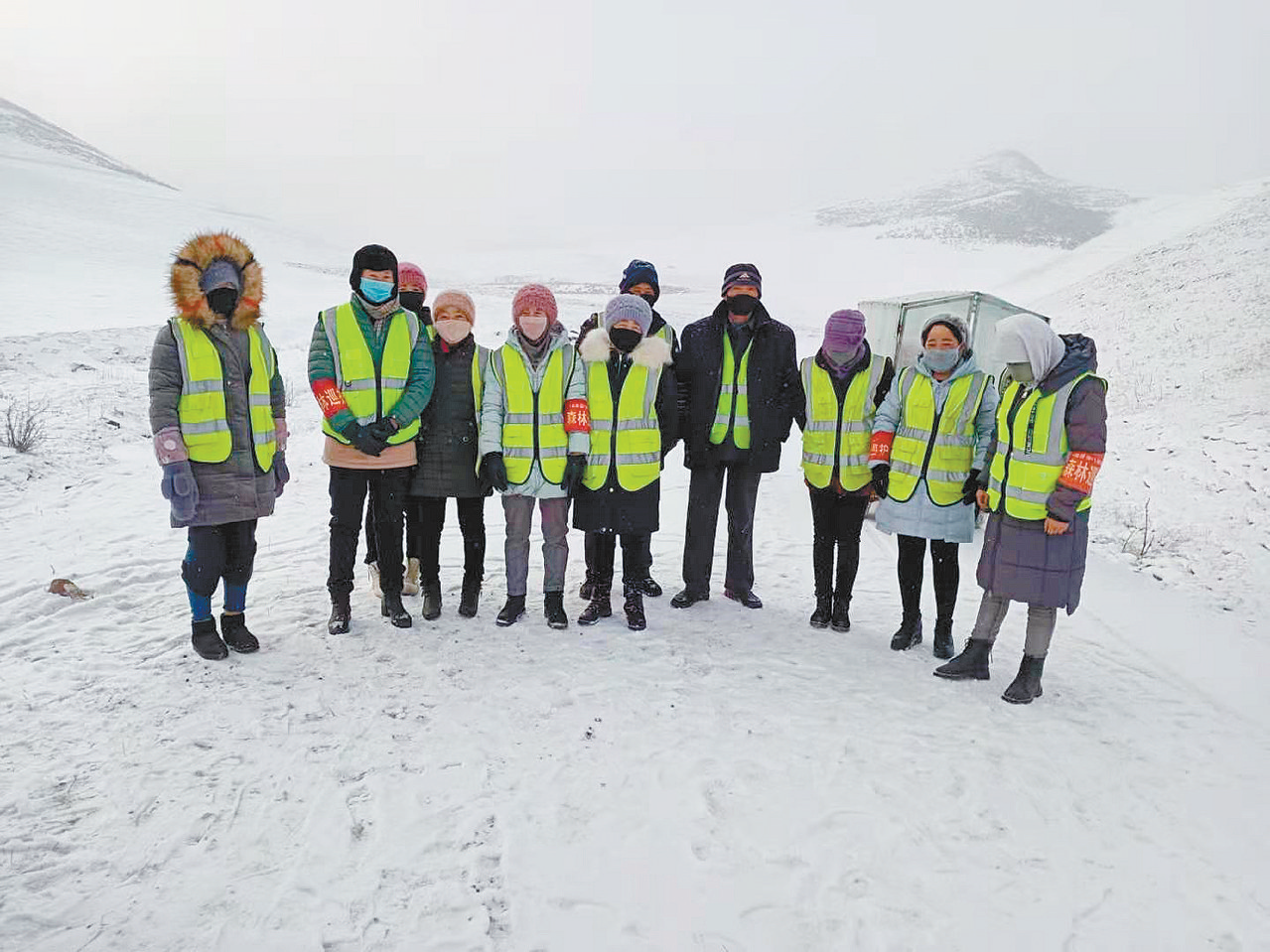 12月8日,早晨8時,給牛喂了草,59歲的楊生昌套上熒光黃的馬甲,騎上摩托車進山。山上的雪還沒化,路不好走,楊生昌只能將車停在一邊,徒步進山。一個小時后,到達了目的地——黃草坡。