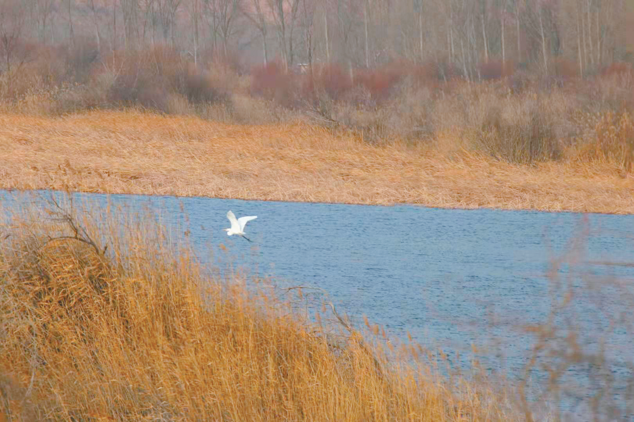 除了大天鵝,還有白鷺展翅。
