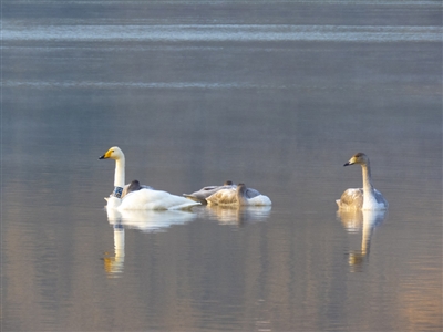 大天鵝的脖頸上為什么戴著一只刻有編號的“項圈”?這個“項圈”是什么部門戴上去的?有什么作用?記者聯(lián)系到青海國家公園觀鳥協(xié)會會長王艦艇,據(jù)介紹,青海東部處在亞洲大陸候鳥遷徙的中線和西線通道上,入冬以來,大天鵝會以家族為單位從亞洲各國飛抵青海境內(nèi)棲息越冬,而此次趙女士拍攝到的戴有環(huán)志的大天鵝來自蒙古國,同樣也是以“4大4小”為組合的兩個家族為單位遷徙來青海的。“大天鵝的遷徙路線是相對固定的,變化區(qū)域不大,只要這只大天鵝一直存活,且一直戴著環(huán)志,那么每一年都有可能在青海境內(nèi)再次看到它的身影。”王艦艇說。