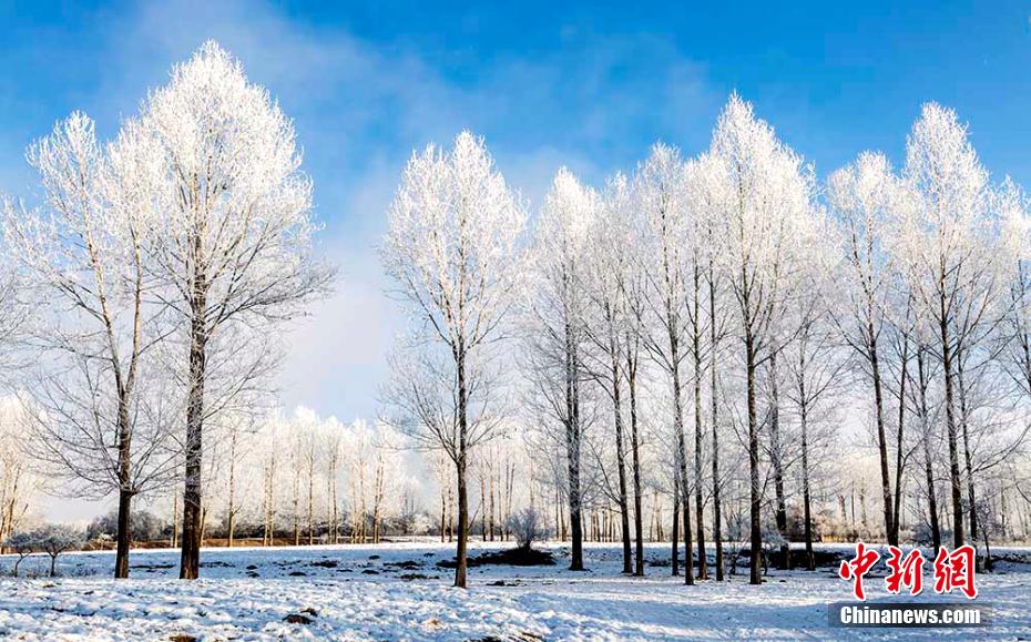 12月21日清晨,祁連山生態(tài)公園核心地區(qū)門(mén)源浩門(mén)河南岸出現(xiàn)冬日霧淞景觀。上午9時(shí)許,浩門(mén)河邊的青年林云消霧散,晴空萬(wàn)里,碧水藍(lán)天,玉樹(shù)瓊花,美不勝收。