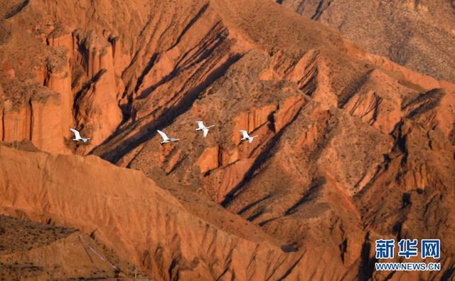 1月22日,大天鵝在青海省貴德縣境內飛翔。新華社記者 張宏祥 攝