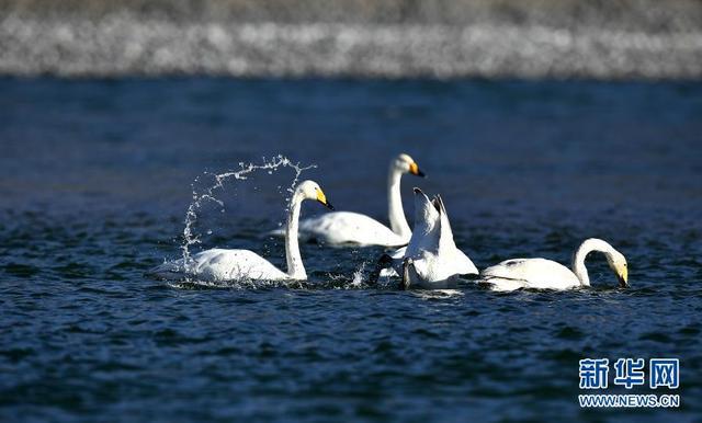 隨著氣溫回暖,位于青海省海南藏族自治州貴德縣境內的黃河成為大天鵝的越冬“港灣”,它們在此覓食、休憩,為冬日的黃河帶來勃勃生機。