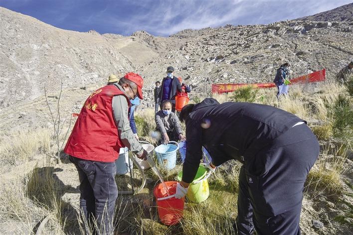 拉薩城關區(qū)統(tǒng)建社區(qū)開展“灌溉一棵樹”活動