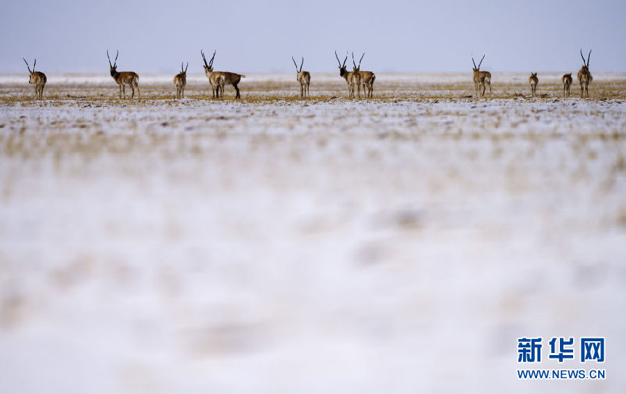 近日,可可西里迎來(lái)降雪,大量藏羚羊匯聚在可可西里五道梁地區(qū),踏上遷徙之路。