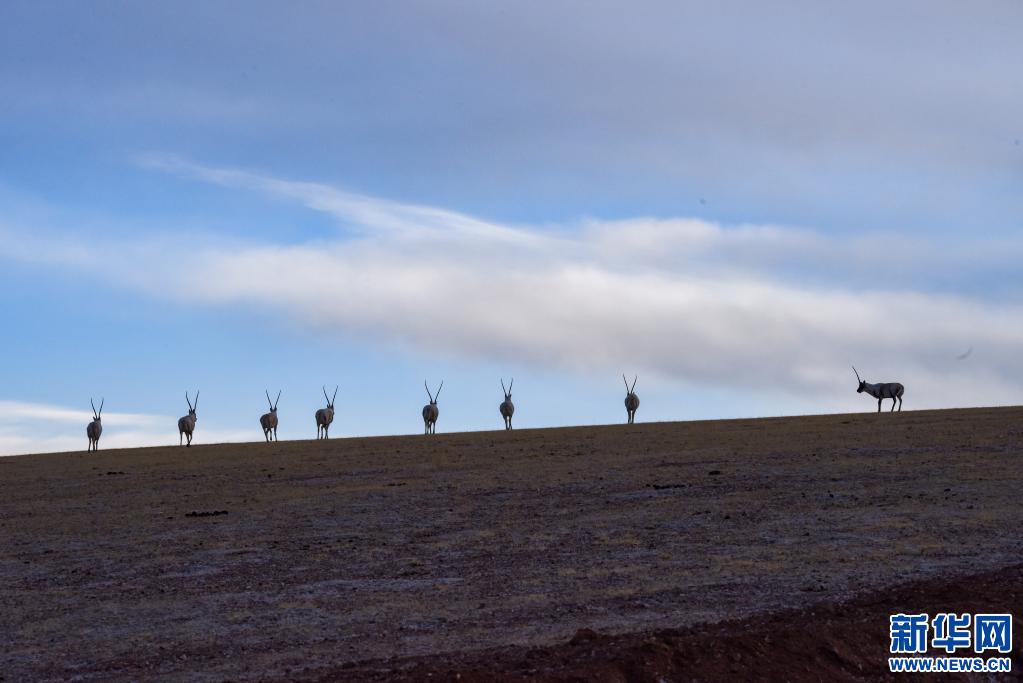 遷徙中的藏羚羊群。(新華社記者 覺果 攝)