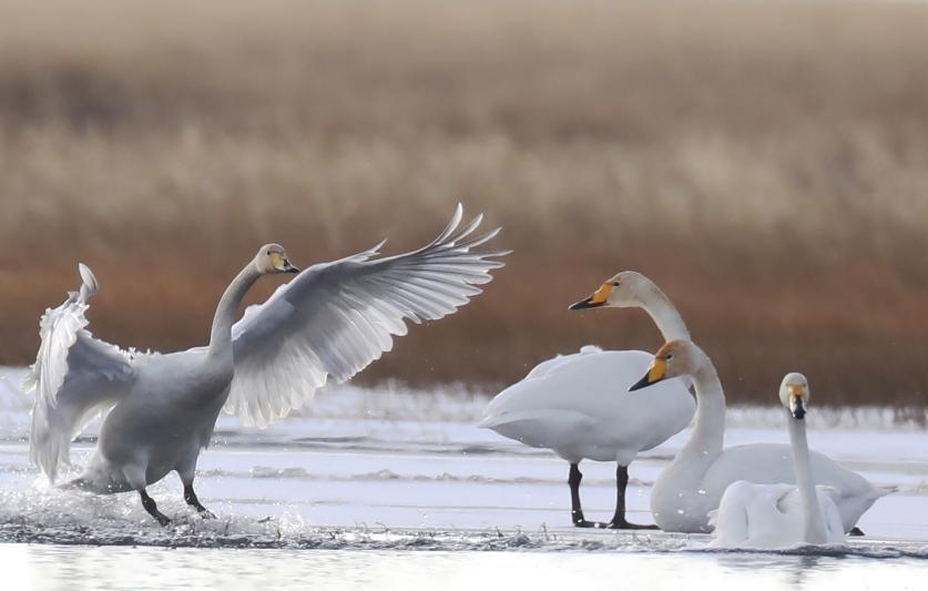 連日來,成群的野生大天鵝陸續(xù)飛臨四川省阿壩州若爾蓋縣高原小鎮(zhèn)麥溪鄉(xiāng)的洛賈瓊果河棲息越冬。[詳細(xì)] -