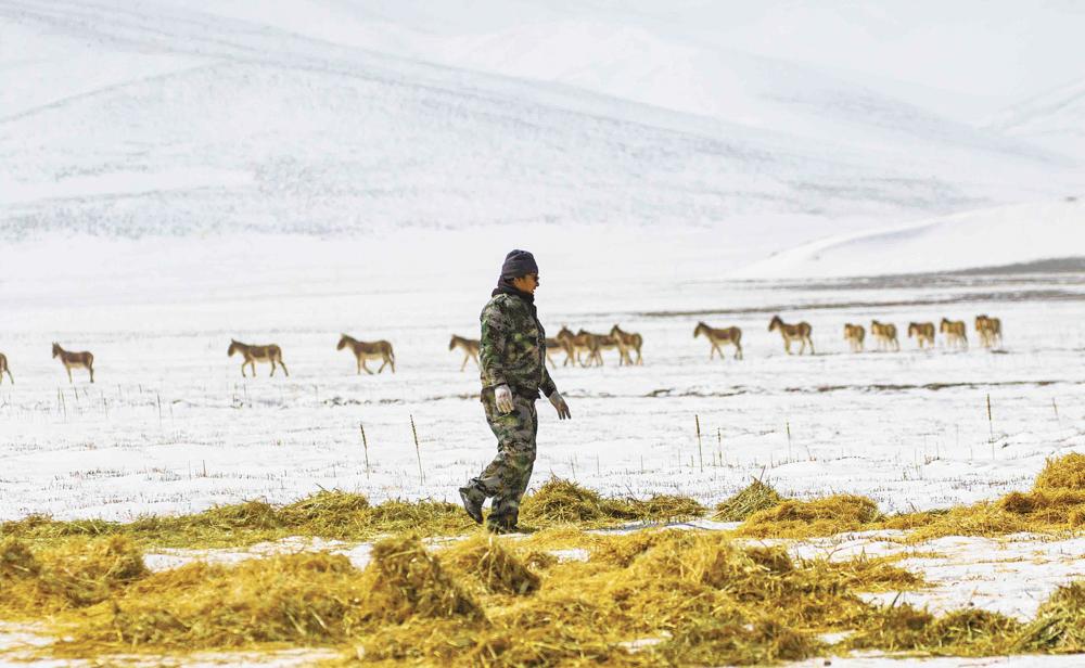 從戴上紅袖章那天開始,他就穿梭在山林、湖畔、河邊,有時(shí)撿拾垃圾,有時(shí)關(guān)注野生動(dòng)物的蹤跡,默默守護(hù)這片家鄉(xiāng)的草場(chǎng)、湖泊、高山。在一次巡護(hù)中,切保和隊(duì)友們發(fā)現(xiàn)由于季節(jié)的變化,導(dǎo)致黑頸鶴等野生動(dòng)物的巢穴被淹,給它們的生產(chǎn)棲息帶來了影響。于是,他和其他生態(tài)管護(hù)員為黑頸鶴等野生動(dòng)物修巢筑窩12個(gè)?!安蛔尷廴静輬?chǎng)、污染動(dòng)植物的水源地”是每一位管護(hù)員的共同想法。
