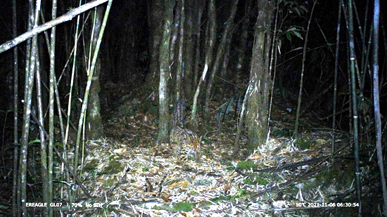 2020年10月-2021年11月,為調(diào)查和補充該區(qū)域鳥獸多樣性數(shù)據(jù),調(diào)查人員在保護(hù)區(qū)內(nèi)的墨脫縣、波密縣、米林縣選擇6個海拔不同的樣區(qū),布設(shè)80臺紅外相機。2021年11月,調(diào)查人員共回收相機213臺次,紅外相機工作25778天,記錄到野生動物80種(獸類36種,鳥類44種),其中國家I級保護(hù)動物共14種:云豹、豺、金貓、大靈貓、喜馬拉雅鬣羚、不丹羚牛、赤斑羚、棕尾虹雉、白尾梢虹雉、灰腹角雉、黃喉雉鶉、林麝、馬麝、黑麝。以及國家II級保護(hù)動物22種。