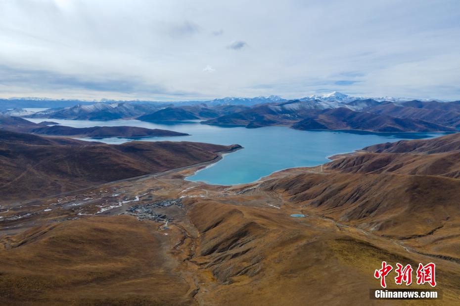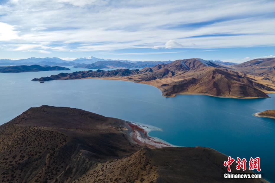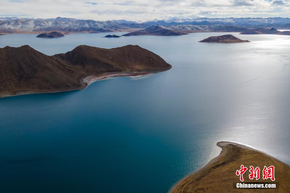 12月28日,羊卓雍錯(cuò)湖岸風(fēng)光。羊卓雍錯(cuò)藏語意為“碧玉湖”,與納木錯(cuò)、瑪旁雍錯(cuò)并稱西藏三大“圣湖”。羊卓雍錯(cuò)湖面海拔4441米,東西長130公里,南北寬70公里,湖岸線總長250多公里。28日,中新網(wǎng)記者自駕前往羊卓雍錯(cuò),翻過山口,到達(dá)湖岸東北面的日托寺,沿途盡是冬日高原湖光山色之美,無人機(jī)航拍鏡頭下,遠(yuǎn)處雪山、冰川巍峨屹立,堪稱絕美。 江飛波 攝