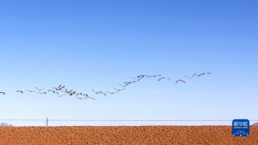 這是3月13日在三江源國(guó)家公園黃河源園區(qū)拍攝的一群蓑羽鶴。新華社記者 呂雪莉 攝