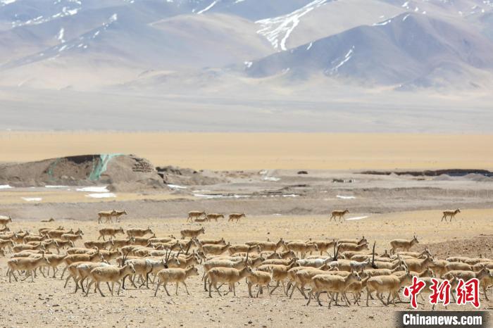 圖為3月27日,西藏改則縣先遣鄉(xiāng)附近的藏羚羊種群。 邊巴 攝