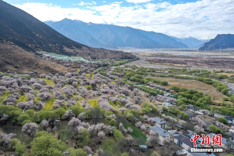3月30日,桃花盛開的林芝市嘎拉村。西藏林芝市嘎拉村被譽為“林芝桃花第一村”,是林芝市最佳的賞花地之一。(無人機照片) 中新社記者 貢嘎來松 攝