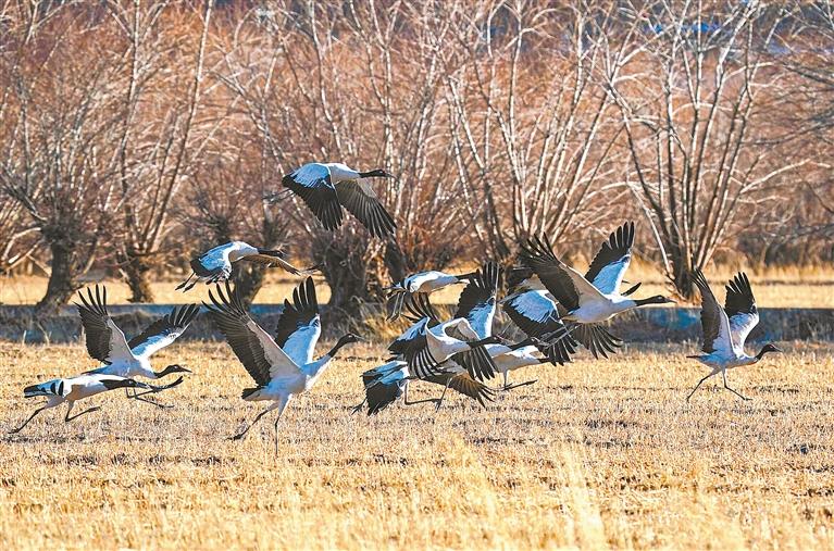 雅魯藏布江中游河谷黑頸鶴自然保護區(qū),是西藏“一江兩河”流域以國家一級保護動物黑頸鶴為主要保護對象的國家級自然保護區(qū)。日喀則市拉孜縣到南木林縣之間的雅魯藏布江中上游河谷,是黑頸鶴越冬棲息最為集中的區(qū)域之一。據(jù)最新調(diào)查統(tǒng)計,在日喀則市境內(nèi)越冬的黑頸鶴成鳥數(shù)8400余只,比保護區(qū)建立初期數(shù)量增長了3000余只。