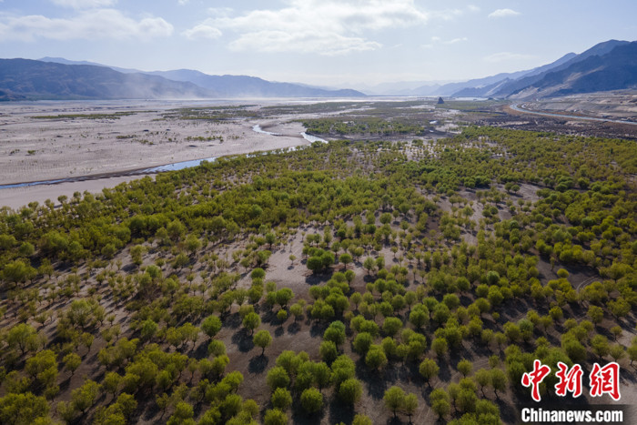 圖為4月18日,航拍雅魯藏布江中游北岸成片的林地。(無(wú)人機(jī)照片) 中新社記者 江飛波 攝